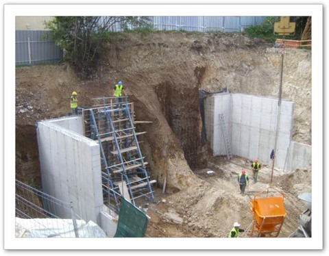 Terrassements phasés de grande hauteur pour les sous-sols.