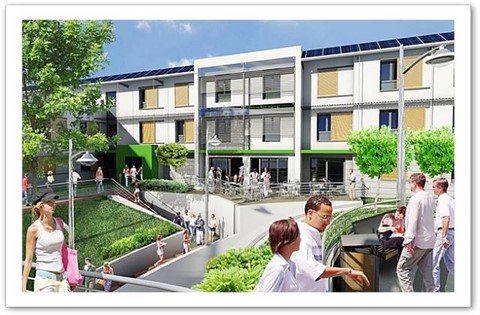 Le traitement des toitures qui allie des espaces végétalisés pour permettre la gestion de la rétention des eaux pluviales et 750 m² de panneaux solaires photovoltaïques ou thermiques