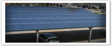 Ombrieres solaires couvrant le parking de l'ASSLIC dans la zone industrielle de CARROS.