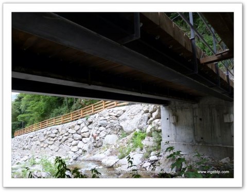 Le projet prévoyait une nouvelle passerelle mixte béton/métal, nous avons proposé une variante bois/métal avec les avantages suivants: