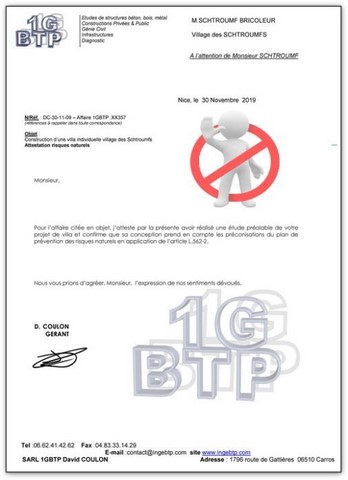 De plus en plus les dossiers de permis demandent une attestation d'un expert confirmant avoir vérifié que la conception du projet répond aux diverses contraintes du POS en vigueur (Séisme, risque naturel, fondations argileuses).
