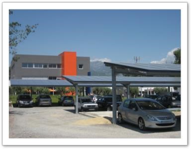 Ombrieres solaires couvrant le parking de l'ASSLIC dans la zone industrielle de CARROS.